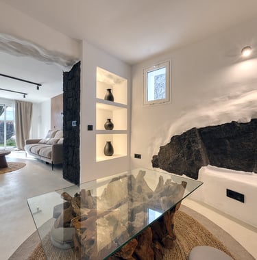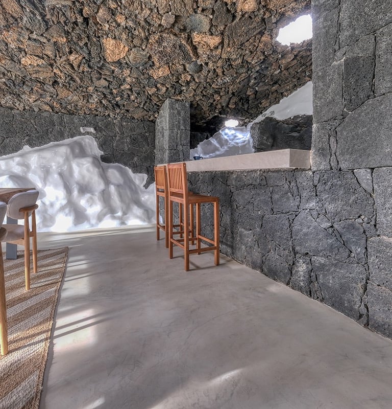 Completely renovated with luxury materials, it blends perfectly with the landscape, incorporating part of the lava into the final design.