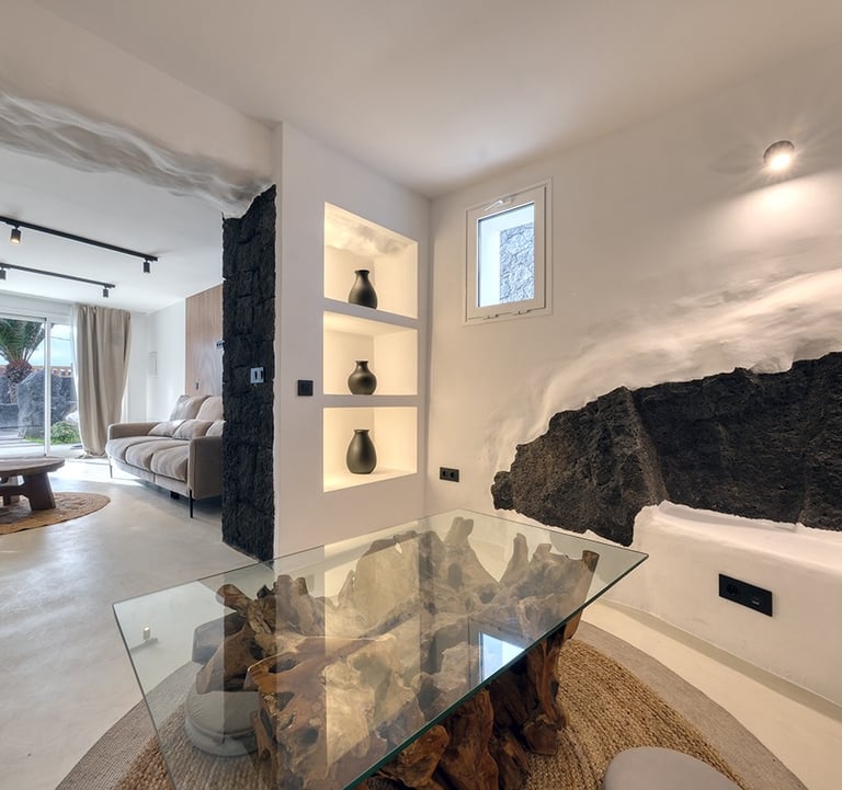 Enjoy relaxing days by the pool, unforgettable sunsets, and moments of pure energy on the spectacular terrace suspended above the lava flow. Here, silence and panoramic views create an atmosphere of absolute tranquility and exclusivity.
